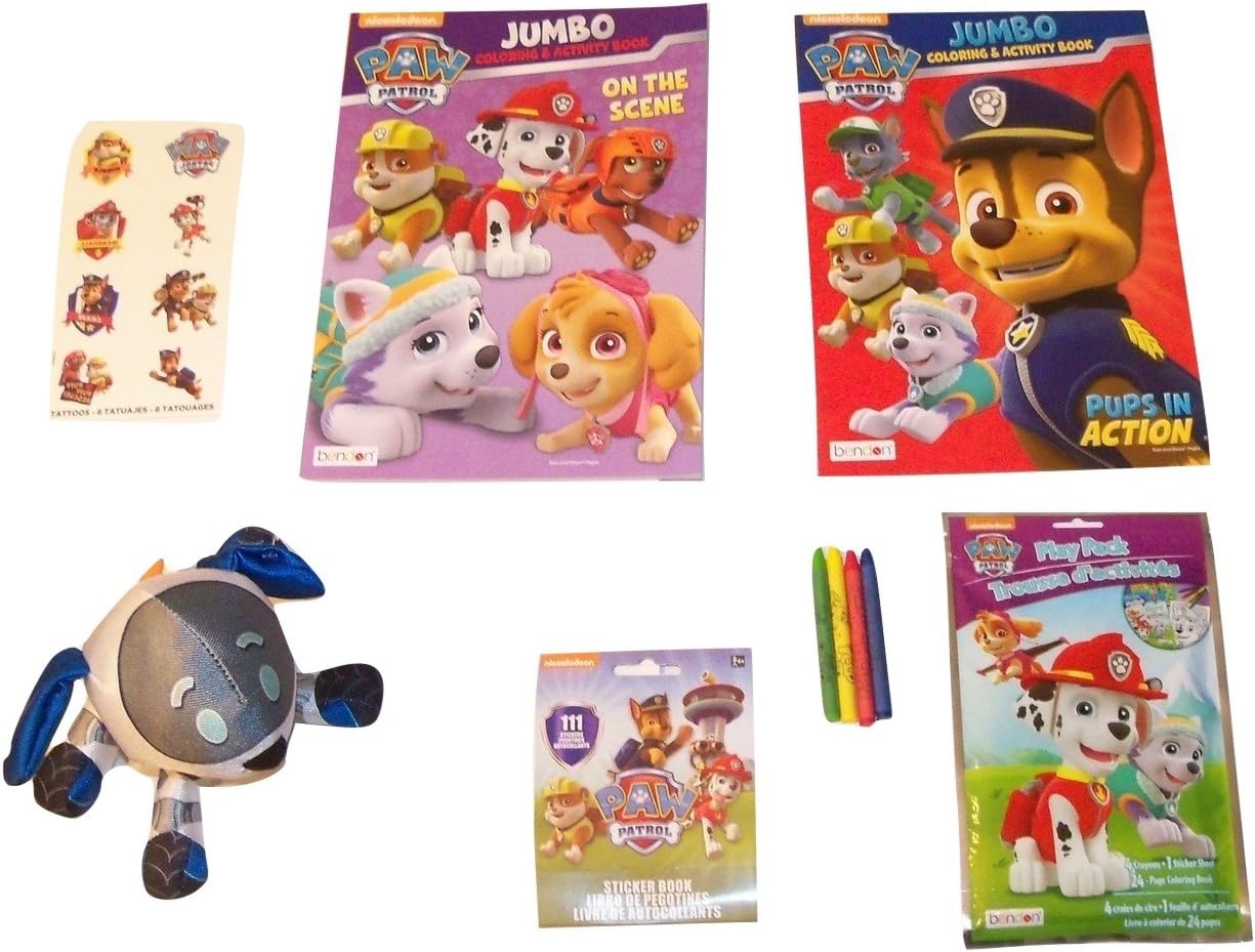 Amazon Com Meggan S Warehouse Paw Patrol Activity Gift Set Robo Dog Stuffed Toy Coloring And Activity Books Stickers Tattoos Play Pack Crayons 7 Items 1 Bundle Toys Games